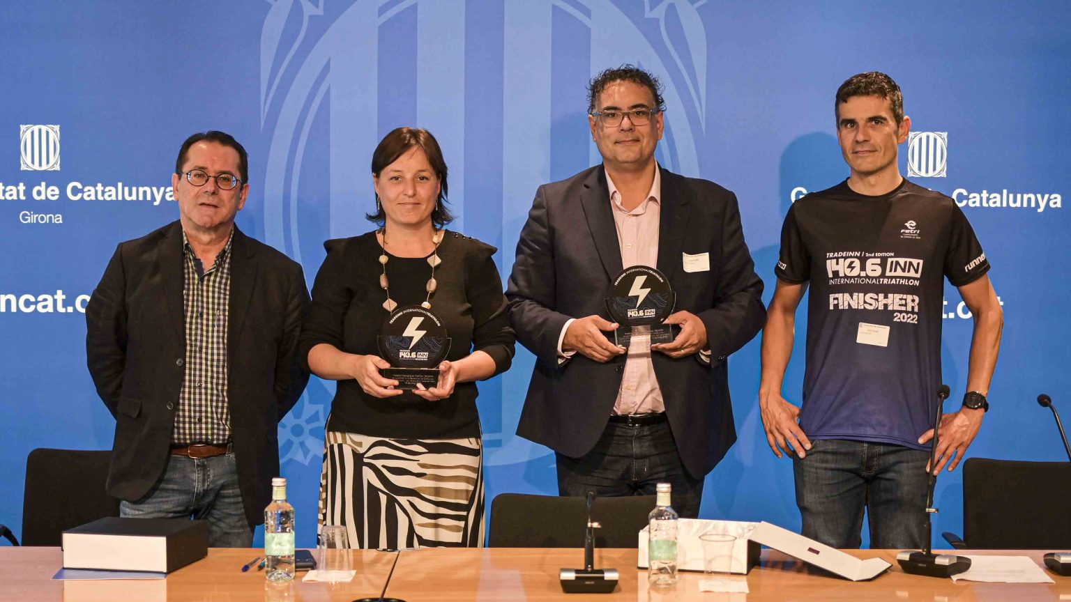 La Delegada de la Generalitat para el Deporte en Girona, Anna Juliá; el Alcalde de Platja D’Aro, Maurici Jiménez; David Martín, CEO y fundador de Tradeinn; y Pedro Torres, concejal de Deportes de Platja D’Aro, presentaron un fin de semana de carreras que llevarán a Platja D’Aro más de 1400 deportistas y alrededor de un total de 8.000 participantes, contando con los acompañantes.