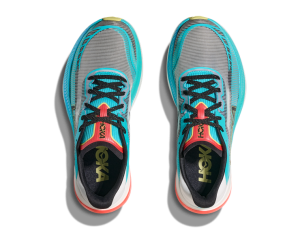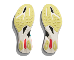 Entre sus innovaciones, la HOKA Cielo X1 2.0  presenta una media suela PEBA con doble capacidad de respuesta y un refuerzo en la placa de fibra de carbono para proporcionar una mayor estabilidad, una mejor amortiguación y propulsión significada por su notable curvatura (MetaRocker).